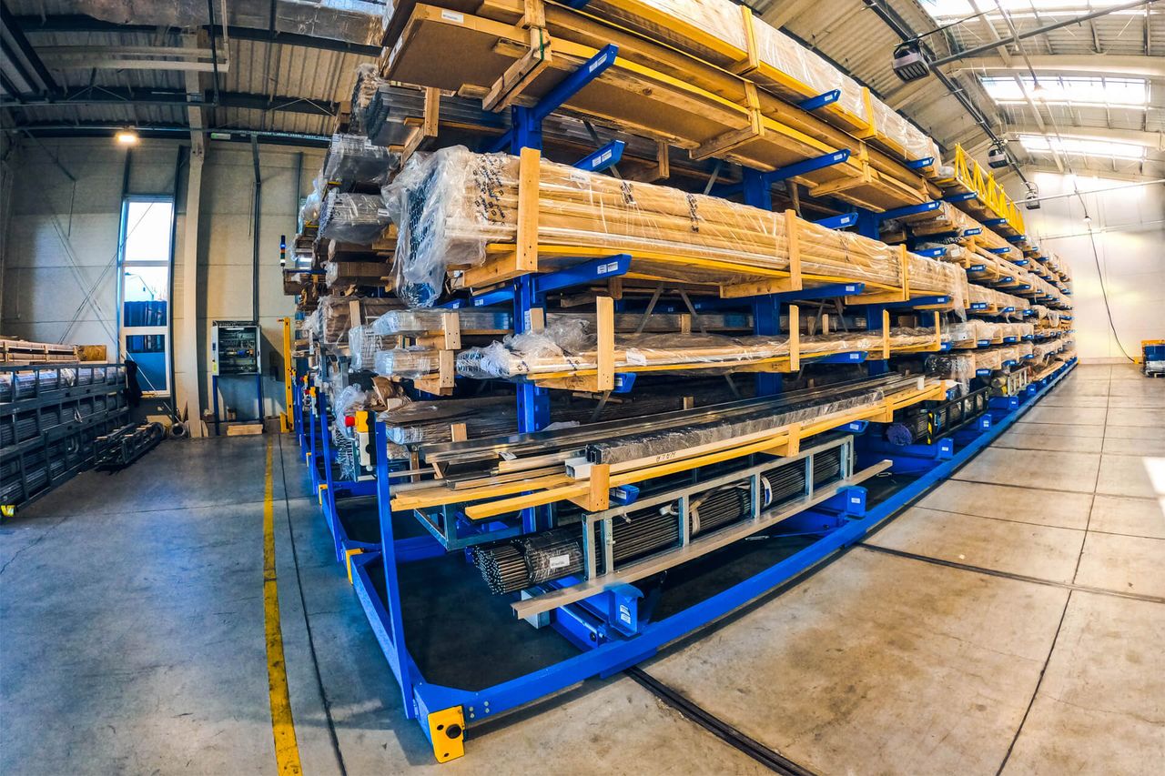 The Electric Mobile Cantilever Rack combines the robust and flexible design of traditional cantilever racking with the efficiency of an electric mobile system, offering an ideal storage solution for long, heavy, and irregularly shaped items like pipes, metal profiles, wood, furniture, and more. This innovative system maximizes storage capacity by eliminating fixed aisles, providing highly dense storage while ensuring easy access to each stored item.